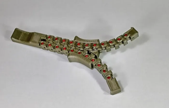 The Zipper piece consists of a base and two rows of pivoting teeth, which all print in place. It is designed for a 0.2mm vertical gap between mating surfaces, so use a 0.2mm layer thickness. Also, use 0.4mm perimeter lines for efficient printing. The Slider piece should be printed with the same settings. (Note: if you want to make the zipper longer, you can break the parts up in your slicer and then print extra lengths of links.)
